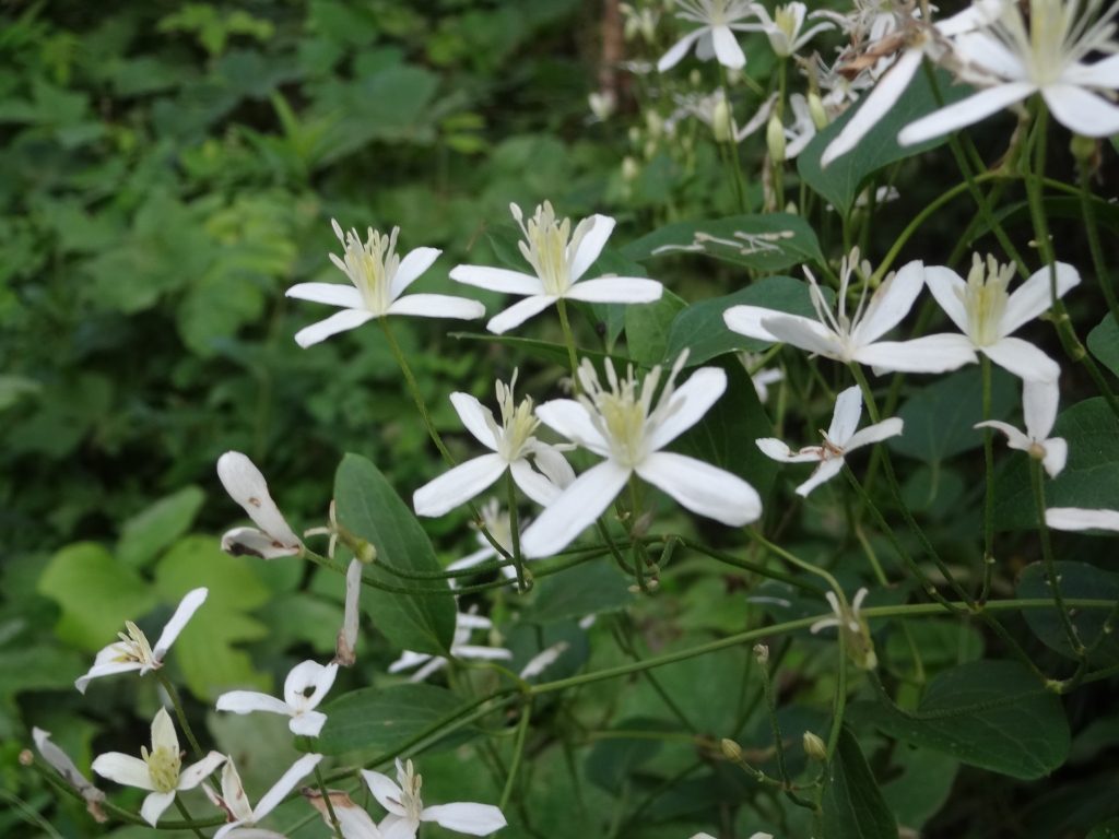 今日の昭和の森は薄曇りです。 時折、日が差します。蒸し暑いです。 この時期、野山の花が少ないのですが、 ツタ類は花を咲かせています。 白い花が多いような気がします。 ツタ類の名前は、なかなか覚えられないです。 写真を撮ると名前を教えてくれるアプリが欲しいですね。