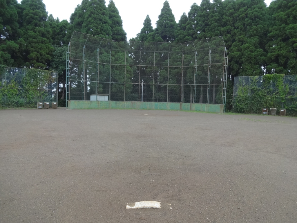 今日も昭和の森は曇っています。 蒸し暑いです。 下タ田池の向こうの南側は、 スポーツ施設が充実しています。 甲子園では高校野球が白熱していますが、 朝の昭和の森の野球グランドは、人気がありません。 犬の散歩もここまでは来ないようです。 マウンドに立ってみると、 バッターボックスまで遠いですね。 やれやれ。