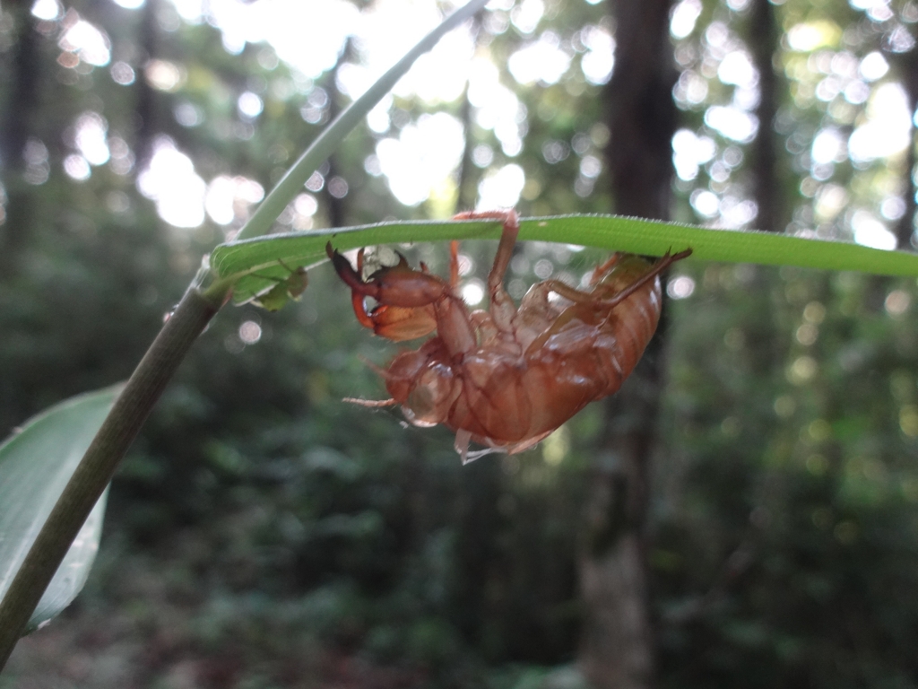今日も昭和の森は曇っています。 暑くなくていいのですが、拍子抜けですね。 経済活動にもよくないでしょう。 森の中で見つけるセミの抜け殻も色あせて見えます。 この天候で、例年よりセミが少ないように思えます。 お盆の頃には、増えるでしょうか。 セミの夏、少年の夏、終戦の夏。