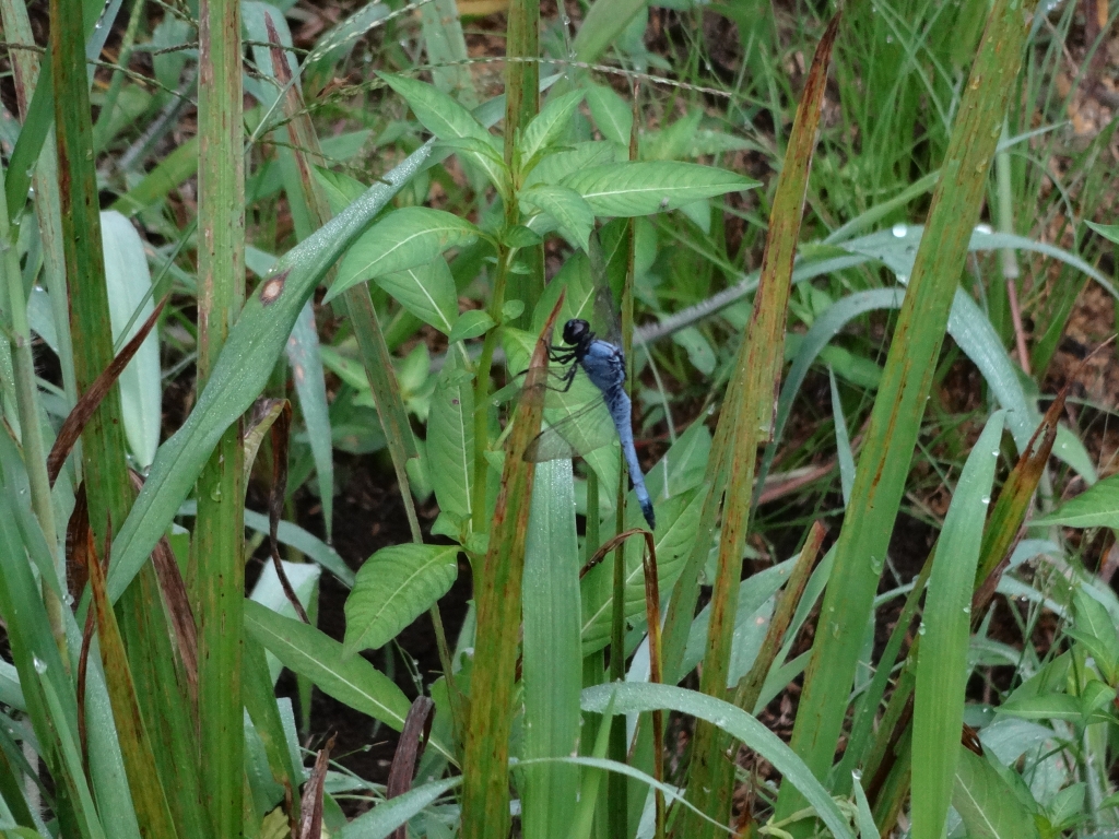 今日の昭和の森は曇っています。 久しぶりに暑さが和らいだ日です。 湿性植物園では、多くのトンボが飛び回っています。 青いのは、シオカラトンボ。オスなんですね。 この種のメスは、黄色から茶色をしています。 ムギワラトンボと呼ばれています。 オスも未成熟な間はこの色です。