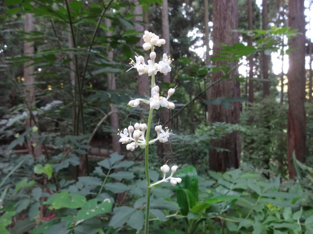 今日の昭和の森は晴れています。 陽が高くなるにつれて、薄雲が多くなってきました。 蒸し暑いです。 気象庁によると、梅雨明けはまだだそうです。 ヤブミョウガの花が咲き始めました。 夏の林間で、この花に出くわすと涼しい気分になります。 白い花ですが、夏の終わりには黒い実になります。