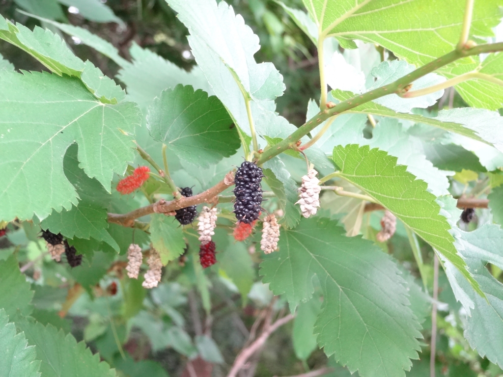 今日の昭和の森は曇っています。 夜の間に小雨が降り、地面が少し濡れていました。 穏やかな日です。 気象庁発表によると、 関東地方も梅雨に入ったようですが、まだ実感がありません。 春に花を咲かせていた木々の実が生ってきました。 桑と言えば蚕さんですが、実が黒ずんできました。 食いしん坊にとっては、ジャムでしょうか。