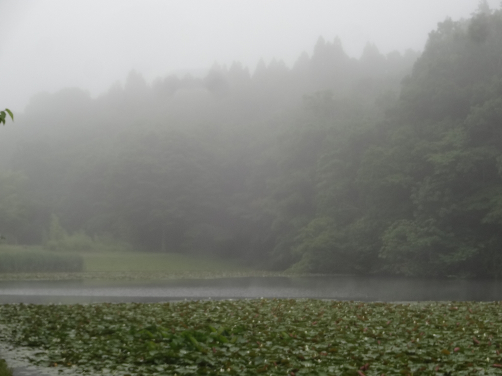 今日の昭和の森は、 朝は曇っていましたが、晴れてきました。 風は弱く、気温は高くありません。 早朝は靄がかかっていました。 下タ田池では、向こう岸が霞んでいました。 展望台から見る大網方面は、 霧に包まれ真っ白でした。 その霧が山の斜面を伝って滑り上って来ていました。 平野の方は水田が多いので、蒸発する水分がたっぷりあるのです。