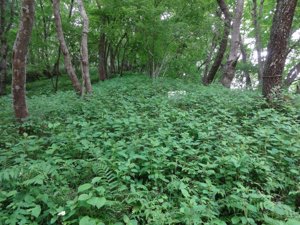 今日の昭和の森は晴れています。 少し雲が浮かんでいます。 風は弱く、暑くなってきました。 ここのところ、毎週どこかで運動会が開催されています。 天気はいいのですが、熱中症対策が必要です。 こんな日は、昭和の森の山林が爽やかです。 春にカタクリが咲く斜面が緑に覆われています。 見ているだけで体感気温が下がります。