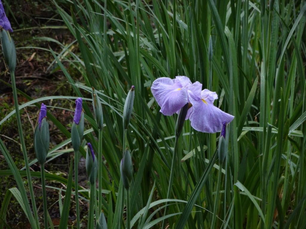 今日の昭和の森は晴れています。 風は弱く、暑くなってきました。 湿性植物園では、花菖蒲が咲き始めました。 開花はちらほらですが、蕾がたくさんあります。 梅雨はまだですが、 紫色の花を見ていると、しっとりとした気分になります。