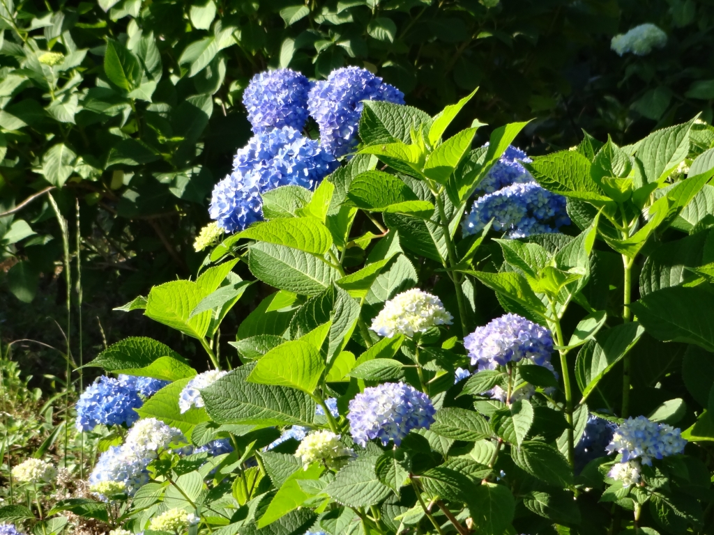 今日の昭和の森は晴れています。 少し雲が浮かんでいますが、 早朝は雲一つない鮮やかな青空が見れました。 少し風が吹いていますが、今日も暑くなりそうです。 アジサイの開花が増えてきました。 湿性植物園の花菖蒲と同じような進行です。