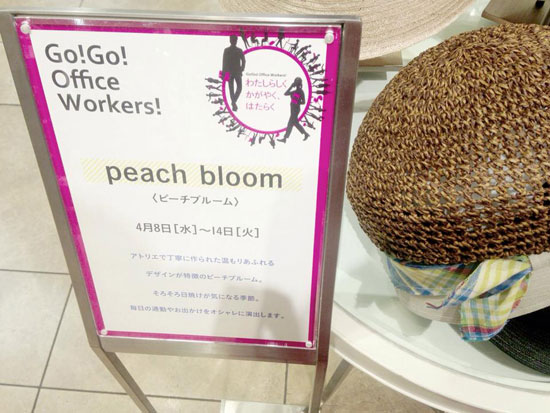 昨日は初日からまさかの寒さでしたが、本日はお天気もよさそうです。 今回はインフォメーション側が売り場となります(入口入って右側です) Go!Go!Office Workers! 今回の三越のテーマですね。 でも、寒いのに、天然系(麦わらっぽいのとかブレード系(細いリボンをぐるぐる縫い合わせたもの)) が人気です。 12960円以上お買い上げの方にPeachBloom特製ハットピン 差し上げてますが残り少なくなってきました! そして平日の午前中、お昼くらいはゆっくり見ていただける時間帯かなと思います。 ...