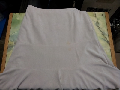 JUGEMテーマ:モブログ JUGEMテーマ:町田 とうとう消費税も8%になっちゃいましたね〜増税前のセールで集まった品物も片付き、今日は雨も降って寒い繁忙期らしからぬ日のであります。 こんにちは、不入流(いらずりゅう)染み抜き師範【むらかみクリーニング】【洗濯職人】染み抜き係りの『のぶ』です。 さてさて、こちらはセール中に緑山店から来たスカート 染み抜き依頼のスカートです。正面真ん中ちょい右に食べこぼしっぽいシミがありますね! タグを見ると急ぎのタグが!入学?入園?の時に履きたいので4日...