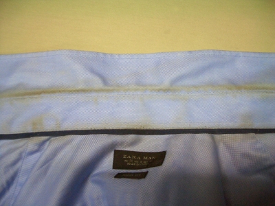 JUGEMテーマ:町田JUGEMテーマ:モブログ こんにちは不入流(いらずりゅう)染み抜き師範【むらかみクリーニング】【洗濯職人】染み抜き係りの『のぶ』です。 本日はサラっといかせていただきますwYシャツの衿汚れ(シミ)です。汚れ(シミ)が酷いと普通に洗っただけでは残ってしまう場合があります。特に汚してしまったので別料金出してでもキレイにして欲しい!という場合、先処理してから洗いにまわします。まずは染み抜き台の上へ、通常だと漬け込んでおいたりするんですが、今回は早く洗いにまわしたかったので染み抜き...
