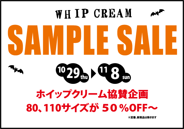 [SAMPLE SALEのお知らせです!] ヨーロピアンテイストのガールズブランド、「Whip Cream」の秋冬アイテム・サンプルセールを開催します!! サンプルのお品なので110サイズがメインとなりますが、一部ですが80サイズもあります。 90〜100サイズのお子さまも着ていただけるようなサイズ感のものもありますので、ぜひ一度ご覧くださいね★ 10月29日〜11月8日(11月4日は休業日です)で開催中!JUGEMテーマ:和歌山