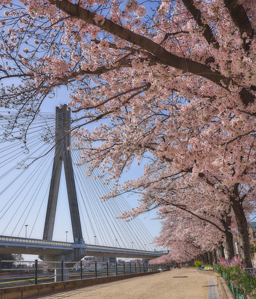 JUGEMテーマ:大阪 猪名川にかかる新猪名川大橋(通称ビッグハープ)の河川敷にも春が訪れました。 桜並木とビッグハープ。桜が満開です。 猪名川をまたぐビッグハープ。左側が池田市、右側が川西市です。川を斜めに横切っていて、写真おさまりの良い橋です。 塔の高さは90mだそうな。 菜の花と桜のコラボレーション。 まあまあ綺麗な...