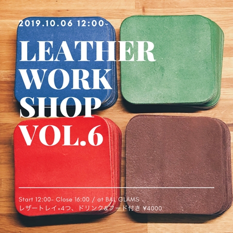 前回延期になったワークショップですが、10月6日に開催決定しました。 さっそく申し込み頂いている方々ありがとうございます! 会場はいつものGLAMSさん。まだまだ参加者募集中です。ご予約お待ちしております。 ワークショップで製作するレザートレイについては、過去のブログでサイズ感や使用例など色々まとめているのでご覧ください。⇒ WORK SHOP VOL.6 LEATHER WORK SHOP Vol.6 10月6日(日) START 12:00 / CLOSE 16:00 参加費:4000円(レザートレイ×4つ、1ドリンク...