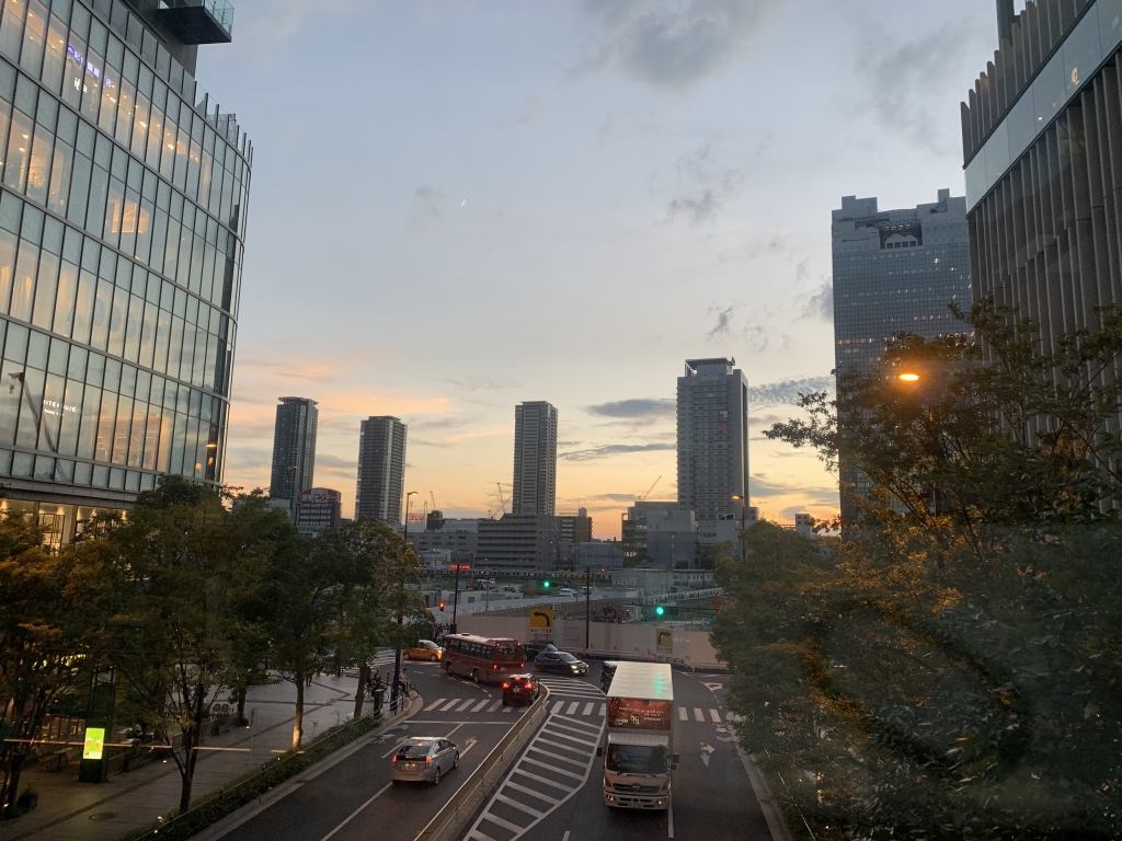 もう木曜日なのにアレですが。 月曜日にグランフロントから見た空がとっても綺麗だったのでシェア♪ 夕暮れ時。 そして日が落ちてからの大きな三日月。 都会でもこんなに綺麗な空が見えるんだと、ちょっと感動しました。 JUGEMテーマ:大阪