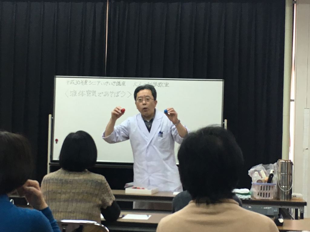 今朝はJRに乗って泉南市へ。 高校時代の恩師の授業を○十年ぶりに受けてきました。 数年前に公務員は定年退職されましたが、今も現役でがんばっていらっしゃいます。 化学の先生だったので「大阪のでんじろう」(←本人は嫌がってますが)として科学の楽しさを広めていらっしゃいます。 いつもは小学生のお子さん相手だそうですが、今日の講座は初の大人。 しかも先生よりも年長のおにいさま、おねえさま方でした。 私が最年少だったんじゃないかしら。。 今日のテーマは「液...