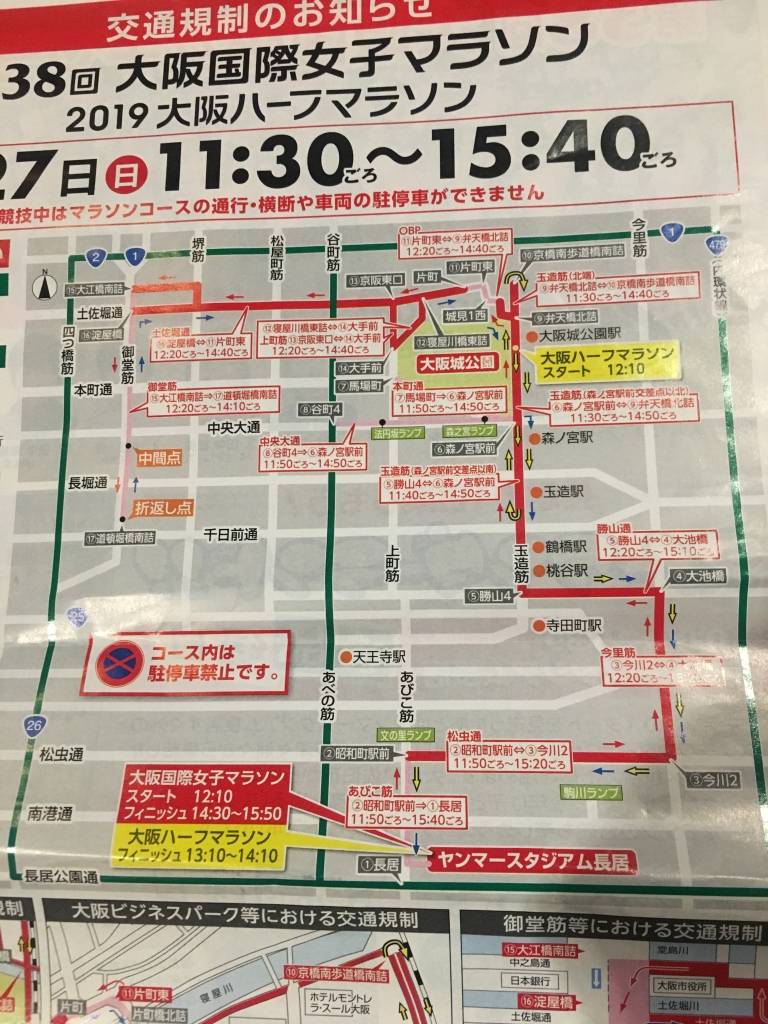 1月の最終日曜日は大阪国際女子マラソンです。 えべっさん同様、この大阪国際女子マラソン開催日も例年雪が降るほど寒い日が多いです。 大阪市内はめったに雪降らないし、積雪なんて数年に一回程度ですから。 なので交通規制が敷かれます。 御堂筋は新橋交差点を越えて道頓堀までですね。 その他はこちらをご覧ください→★★★ 秋の大阪マラソンとはコースが違いますが、彼女たちは走りのプロなので規制解除されるのも予定より早いことが多いです。 とはいっても車や...