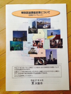 明日5月17日(日)は 大阪都構想の是非を問う住民投票の日です。 大阪に永らく住んでいますが 住民投票って記憶にないです。。 ある意味、わくわくしています この数日間、 チラシやCM、街頭演説など 賛成、反対の意見を見聞きしています。 もう一度しっかり見直して 初体験の投票に行ってきます。 大阪市内にお住いのみなさん、 投票に行って民意を告げましょう! JUGEMテーマ:大阪