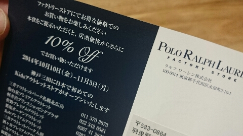 今秋Ralph Lauren ファミリーセールの開催あると思ってましたが10%OFFのDMが届いんで関西ではないのかな… 冬か来春頃ですかね(-_-;) JUGEMテーマ:大阪 ファッション ブログランキングへ