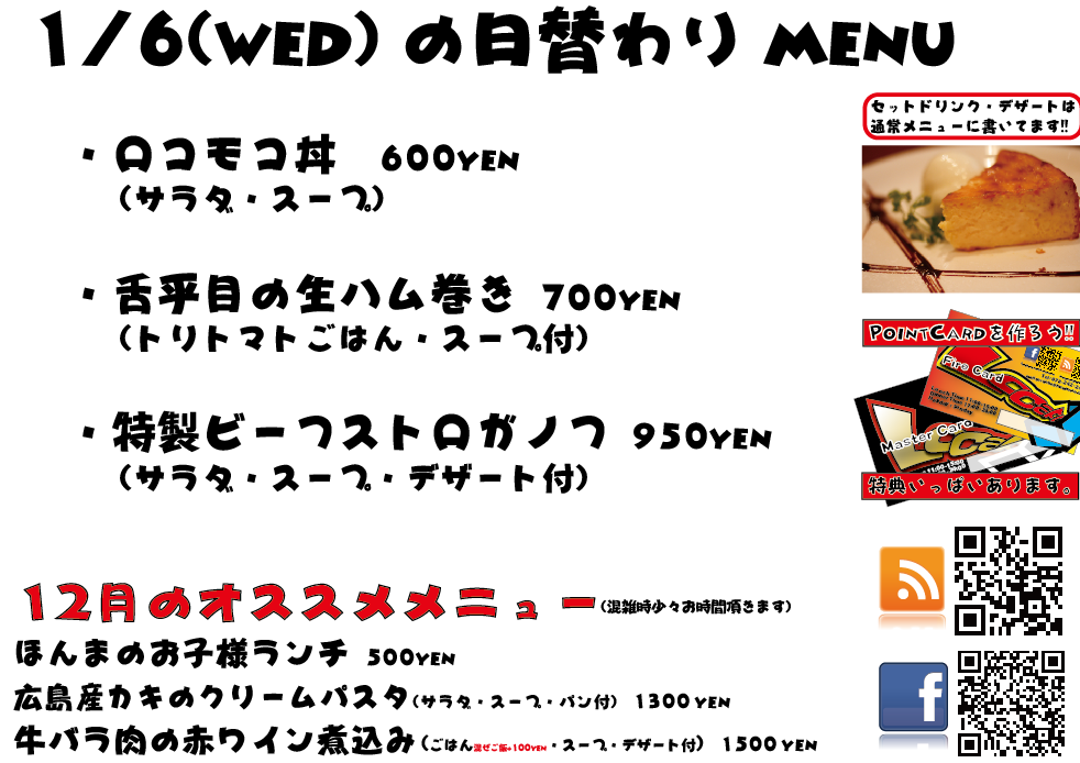 JUGEMテーマ:神戸・西宮・芦屋などの阪神間 こんばんは 今日もありがとうございましたm(._.)m 明日1日出勤すれば、3連休の方が多いのではないでしょうか? 当店は、日曜定休日でございますので、月曜祝日はOPENしております〜 明日の日替わりランチですが、なんとなんと、ほんとごくたまにしかでない 『牛すじカレー』でございます、超大人気な上に数量が限られておりますのでお早めにっ!! それでは明日も皆様のお運びお待ちしております〜