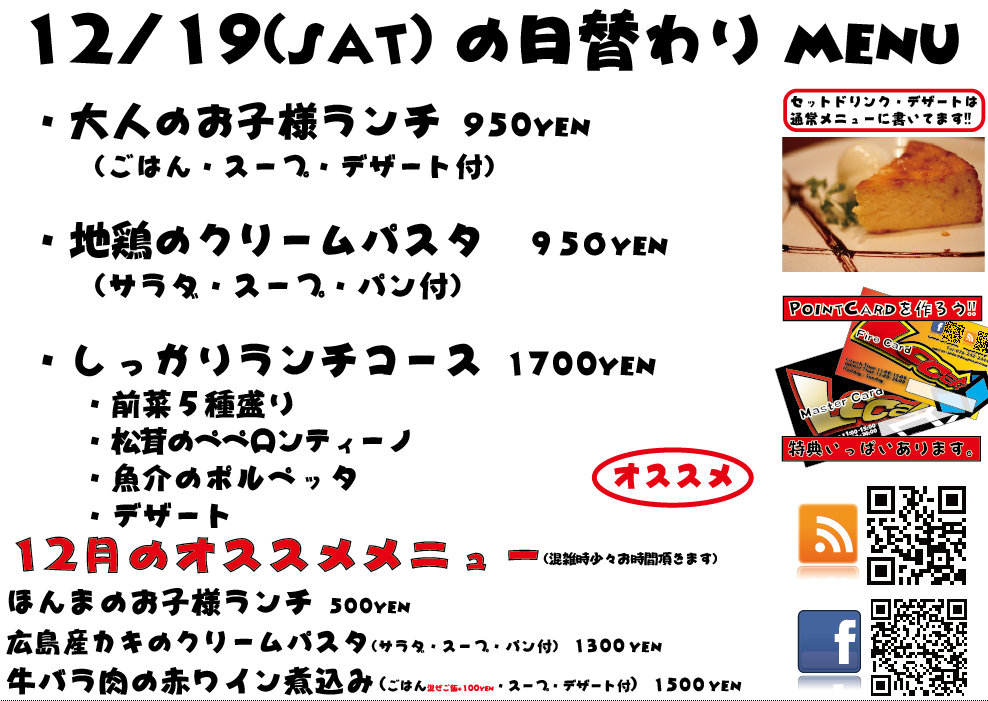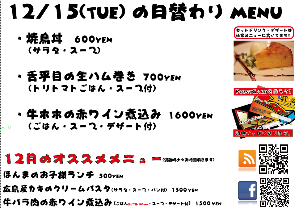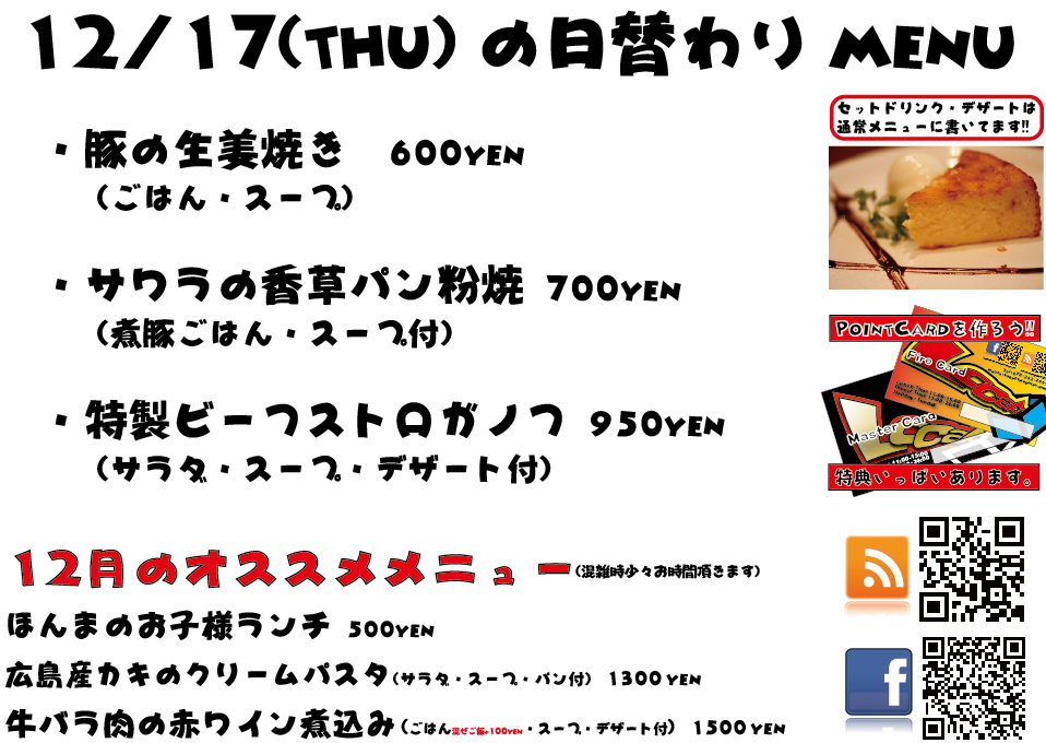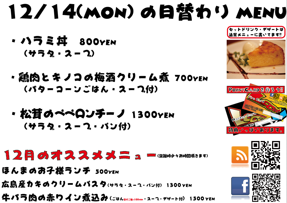 JUGEMテーマ:神戸・西宮・芦屋などの阪神間 こんばんは! 今日もありがとうございましたm(._.)m 遅くなってしまいましたが、明日の日替わりランチでございます〜^^ よろしくお願いします!
