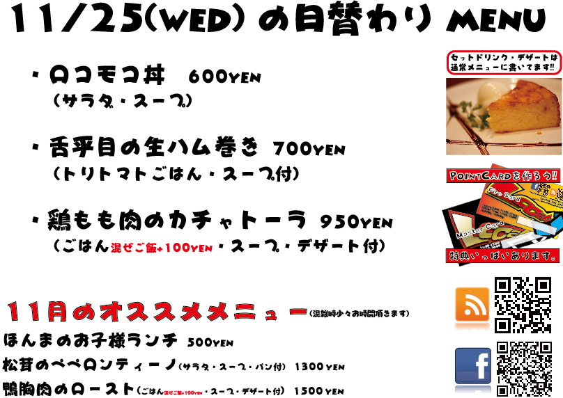 JUGEMテーマ:名物グルメ JUGEMテーマ:神戸・西宮・芦屋などの阪神間 こんばんは 今日もありがとうございました! 今日は学生時代に毎日晩ごはんを食べにきてくれていた、ある学校の卒業生が来てくれました。 もう3年も前に卒業し、それ以来でしたのでめちゃ大人になっててびっくり いろいろ昔話に盛り上がり、大人に成長した彼を見てホッとしたというか...嬉しく思いました^^ こういう時に、飲食店をやってよかったなと思う瞬間ですよね〜w 今年もあと1ヶ月ちょいになりましたが、頑張ります〜