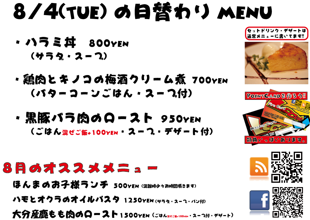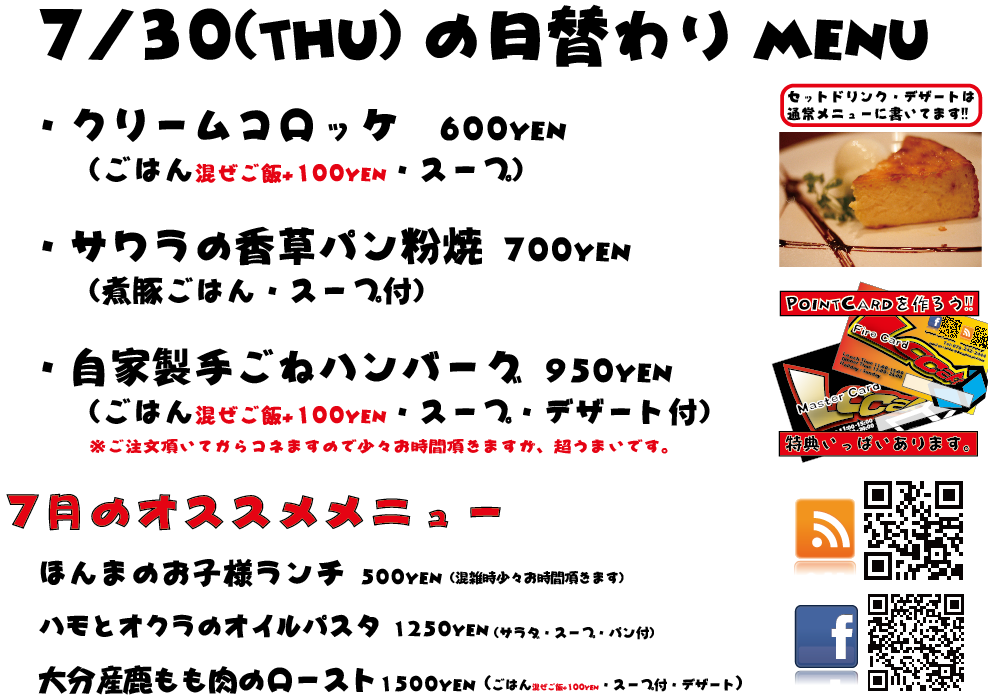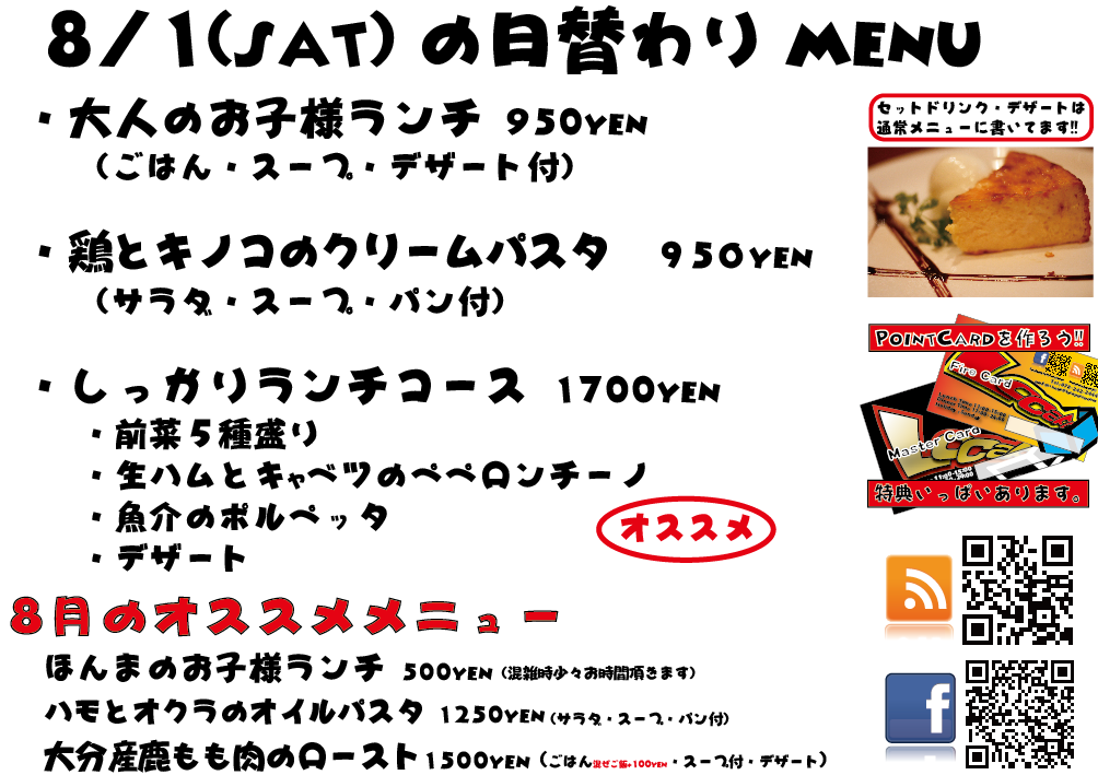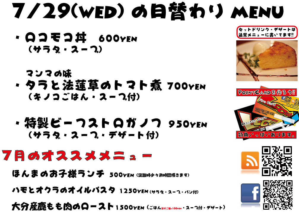 JUGEMテーマ:神戸・西宮・芦屋などの阪神間 こんばんは 今日もありがとございました! 8月に向けて皆様ぼちぼちいろいろご予定を決めたりしているようですね〜お盆ですしね!! 当店は8月は、『同窓会プラン』超オススメしております、ぜひ^^ それでは明日の日替わりランチもよろしくお願い致します