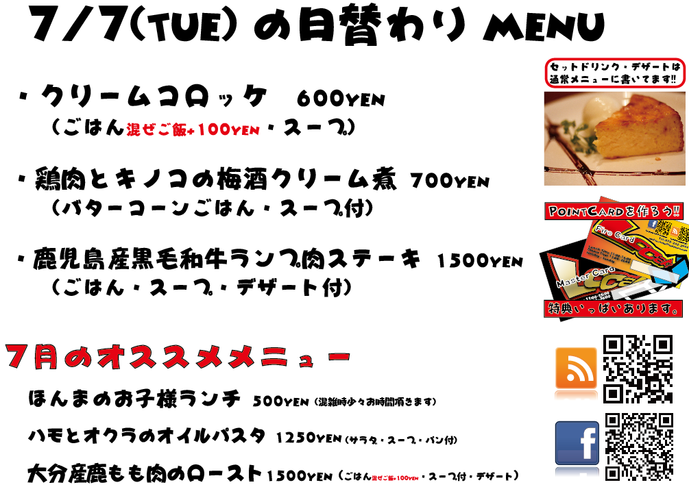 JUGEMテーマ:神戸・西宮・芦屋などの阪神間 こんばんは、今日は雨の中お越しいただいた皆様!ありがとうございました! 明日は日曜日定休日でございます、よろしくお願い致しますm(._.)m 明後日からも元気に営業しておりますので皆様ぜひおまちしております〜 そして来週は七夕にぜんぜんちなんでいなですが1週間、 『チーズとワインのセット』 を、させて頂きます。 赤or白ワイン+チーズ3種盛が800yenでございます。 少しですがお得になっておりますので、ぜひ皆様のお運びおまちしております〜 それで...