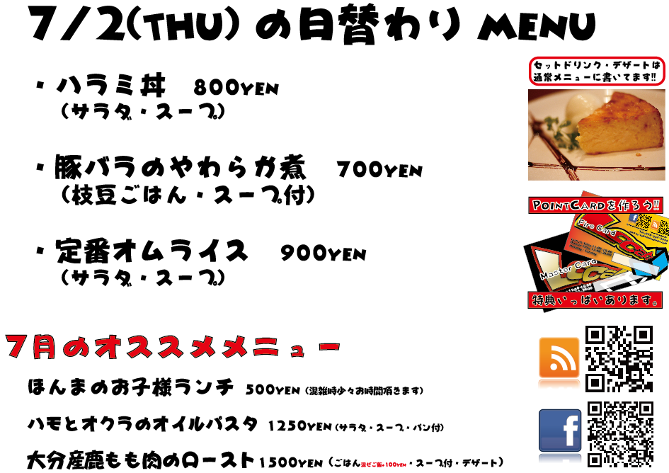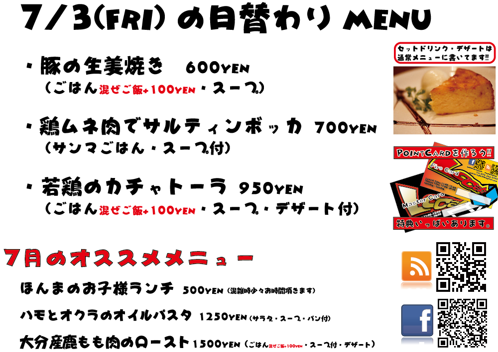 JUGEMテーマ:神戸・西宮・芦屋などの阪神間 こんばんは! 明日から7月でございますね〜、てか梅雨はもう明けたのでしょうか...? 今日は夕方から雨でしたが、梅雨っぽくないと言いますか...え?って感じですねw まぁ、降らない方が当店としてはありがたいので、いいんですが instagramではUPしましたが、先日から店内に七夕セットを設置しております。 七夕まで置いております、ぜひ短冊に願いを書いてくださいませ〜^^ それでは明日の日替わりランチもよろしくお願い致しますm(._.)m