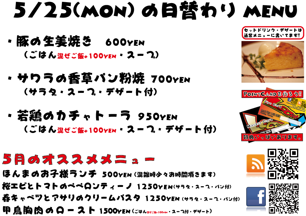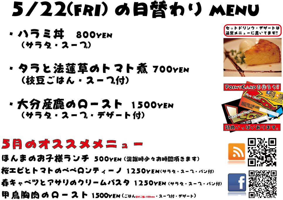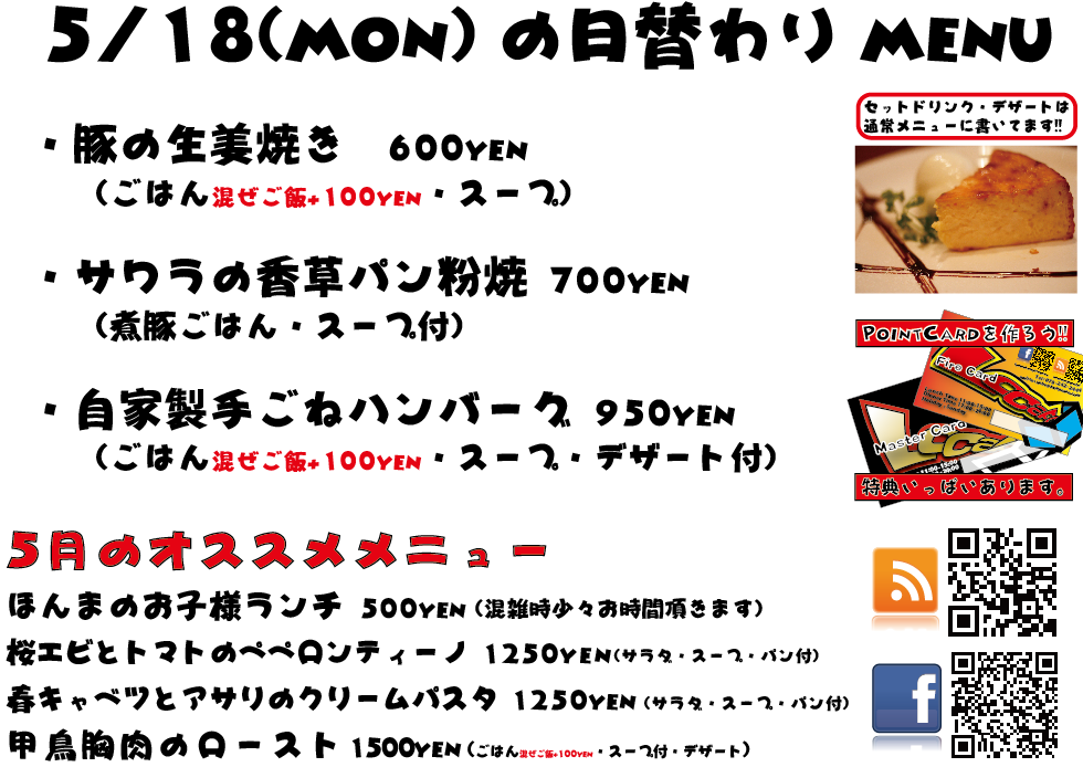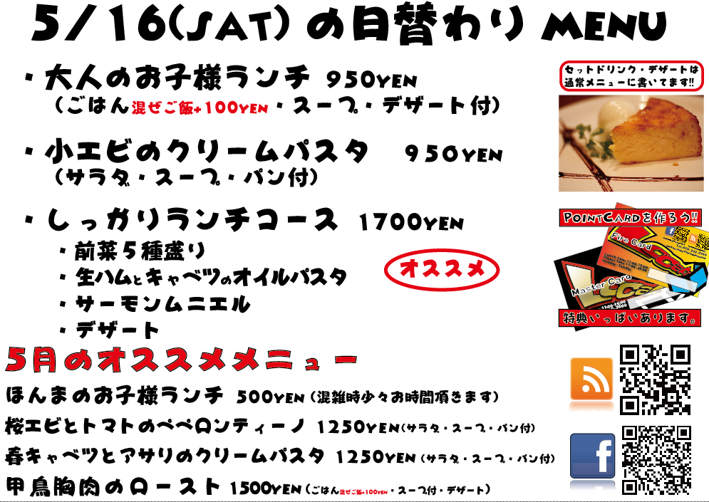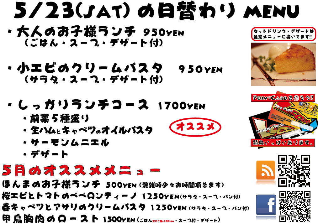 JUGEMテーマ:神戸・西宮・芦屋などの阪神間 こんばんは 今日は題名がいつもと違うのにお気づきでしょうか? そう...明日はDinnerTimeがお休みでございます!平日の夜に休むなんていつぶりでしょうか?というぐらいに久しぶりの平日休みでございますが、これには訳がありまして。 ということで、明日はLunch営業はしておりますが、Dinner営業はお休みさせて頂きますm(._.)m ですので、明日と明後日の日替わLunchのメニューでございます〜よろしくお願い致します