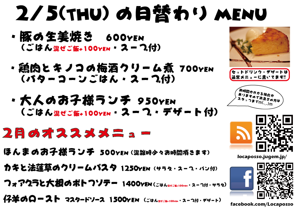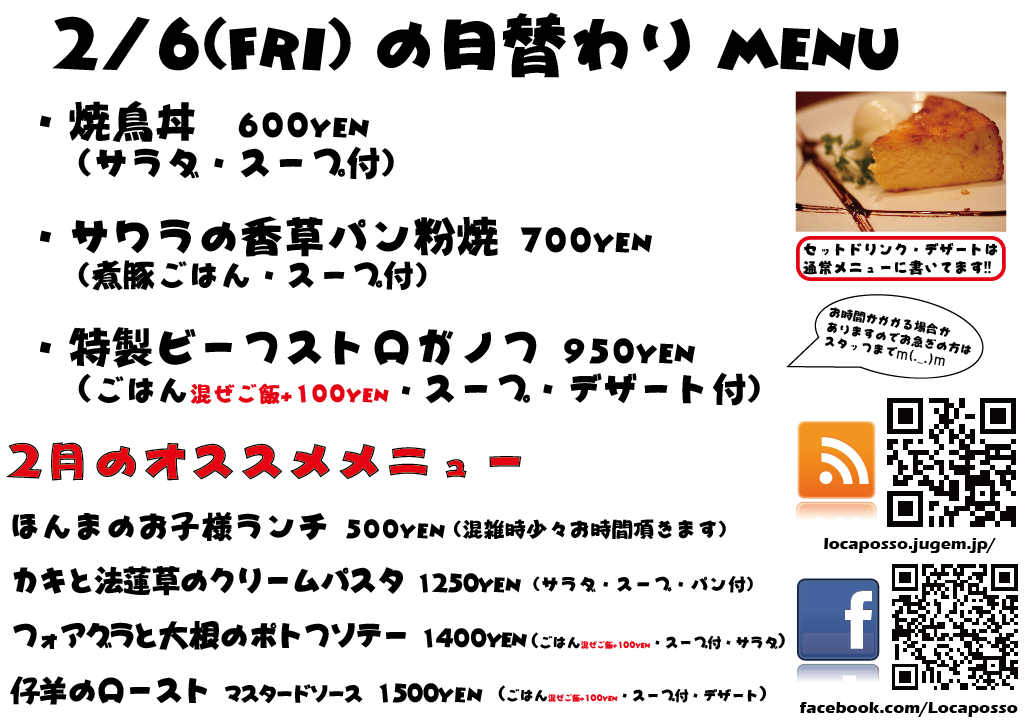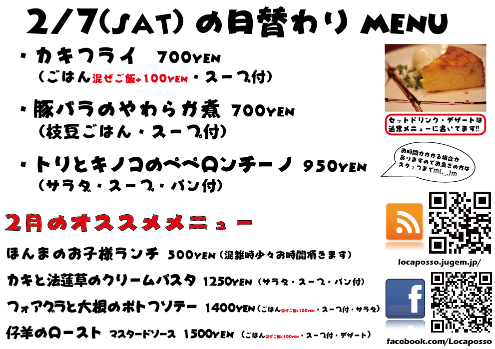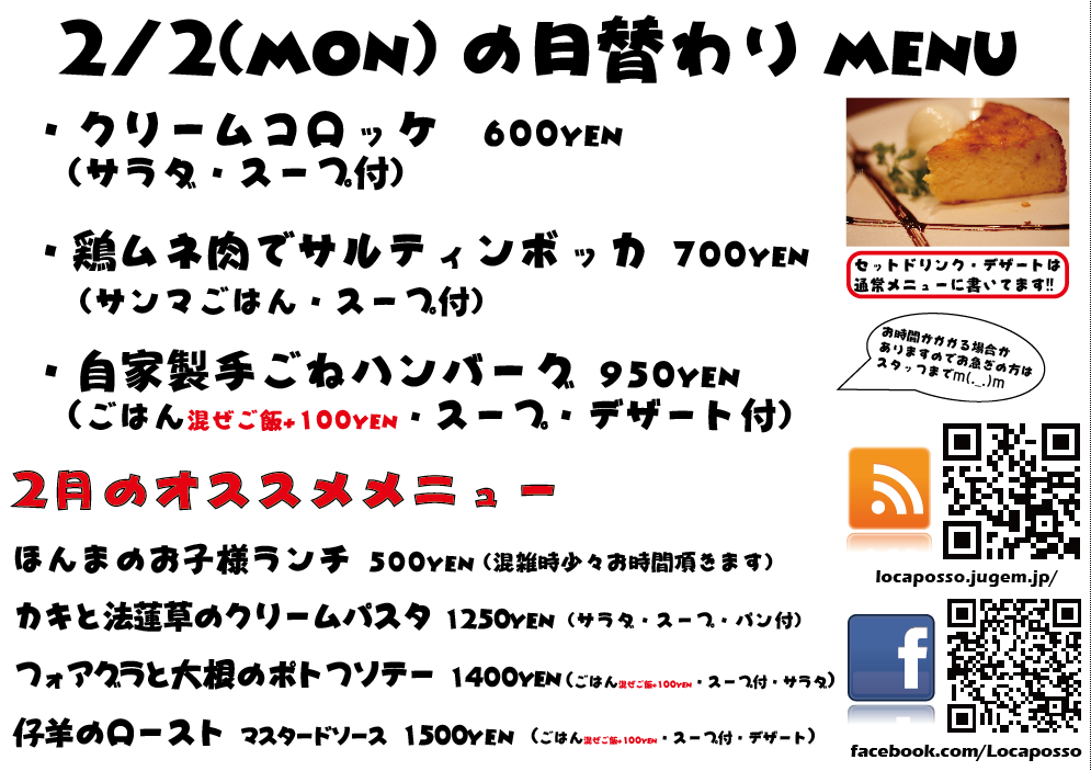 JUGEMテーマ:神戸・西宮・芦屋などの阪神間 こんばんは! 明日の日替わりランチはこちらで‐っす! 先程Upしました、バレンタイン・ホワイトデーのコースも合わせてよろしくお願いいたしますm(._.)m