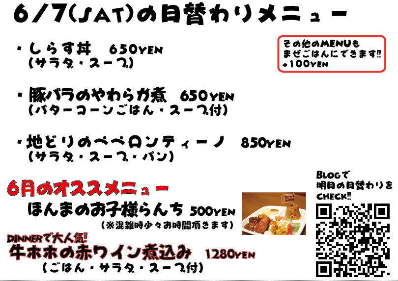 JUGEMテーマ:神戸・西宮・芦屋などの阪神間 こんばんは 今日は兵庫県北部、雨風すごかったみたいですね〜 お住まいの方だいじょうぶでしたでしょうか?竜巻警報とか出てたし 今週&週明けは雨も降らなさそうですし、楽しい週末が迎えれそうですね 明日も日替わりランチもよろしくお願い致します