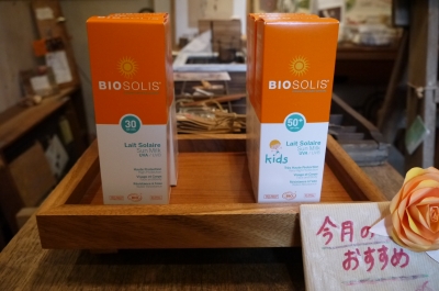 JUGEMテーマ:神戸・西宮・芦屋などの阪神間 これからの季節に向けて、 ビオソリスの日焼け止めミルク入荷のお知らせです。 写真左: ビオソリス サンプロテクションミルク30 3300yen(税別) 写真右: ビオソリス サンプロテクションミルク キッズ50+ 3300yen(税別) いずれもオーガニックのアロエベラエキス配合の フェイス&ボディ用の日焼け止め。ウォータープルーフです。 紫外線から、お肌をやさしく守ります。。。。