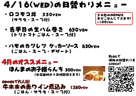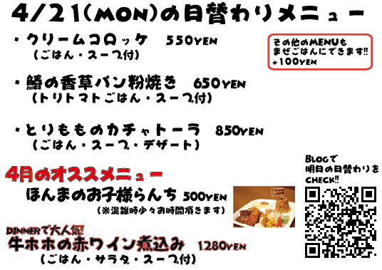 JUGEMテーマ:神戸・西宮・芦屋などの阪神間 こんばんは 遅くなりましたが、明日の日替わりランチです!よろしくお願い致します
