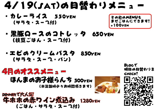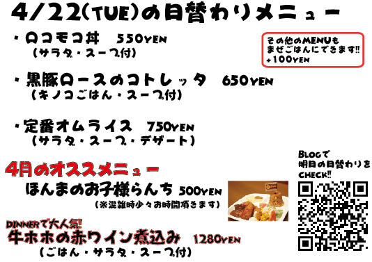 JUGEMテーマ:神戸・西宮・芦屋などの阪神間 こんばんは 最近朝晩とお昼の温度差が激しいですね、風邪などひかれてないでしょうか? 明日の日替わりランチもぜひよろしくお願い致します〜