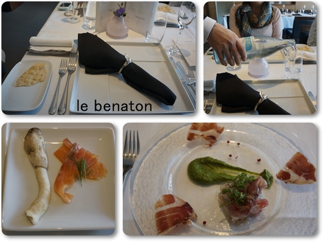 お仲間の都合が合った唯一この日にお花見です。まだまだ開花していないし、前日はお昼まで大雨で桜はどうかなと危ぶまれました。先ずランチを「Le Benaton」食材にこだわったフレンチでした。お初のきのこやコカと言う名のクラッカーみたいなの、私のセレクトじゃない方のは温野菜が色々、私が選んだのはちょっと味が濃厚かな丁寧に説明をして下さり、お水はガス抜き、ガス入りを選ぶので、きっとお代はとられるのかなと思ったけど、コース3800円代のみでした。お仲間が選んだ前菜、ホワイトアスパラにフォアグラはプラス500円...