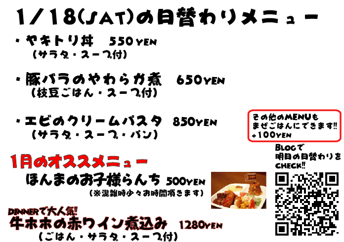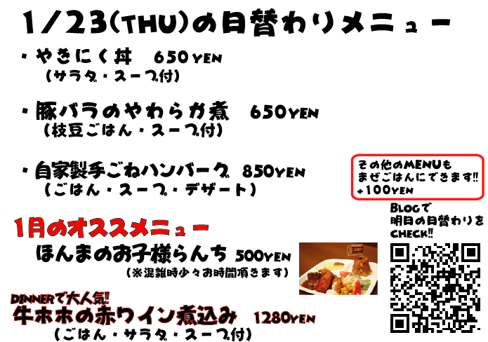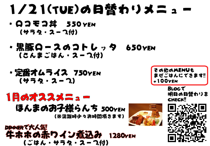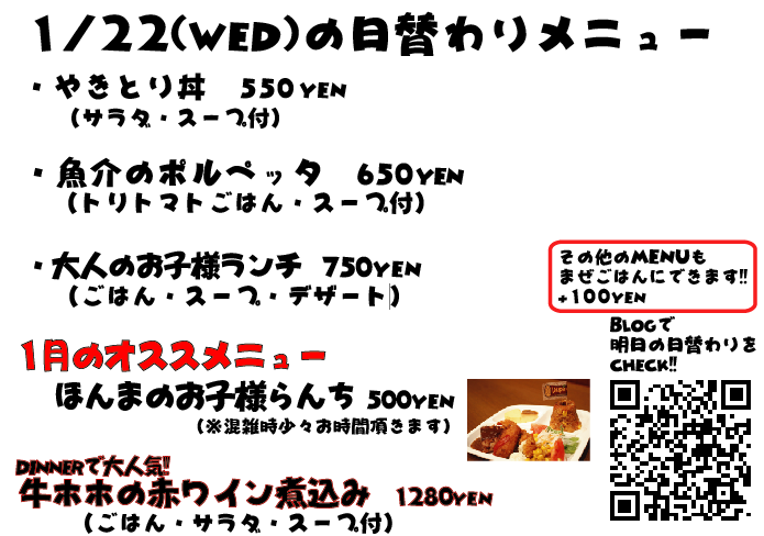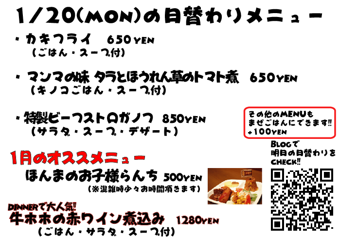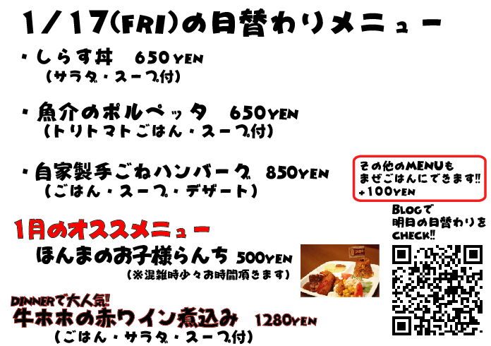 JUGEMテーマ:神戸・西宮・芦屋などの阪神間 こんばんはこんばんは 今日はお昼から突然寒くなってましたね 年が明けてもう2週間過ぎてしまいそうですね、今年もあともう351日!!!wwww あと350日、がんばります! それでは明日の日替わりランチもぜひっ
