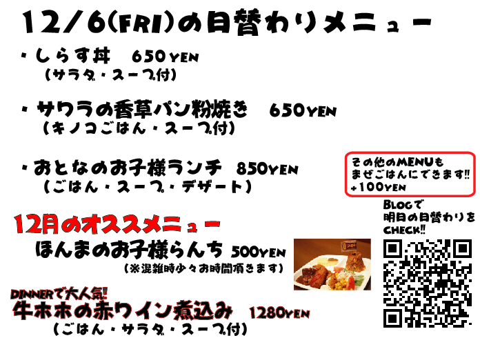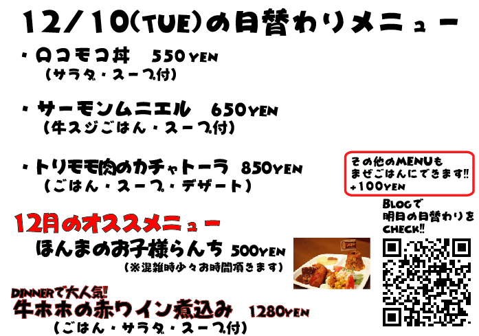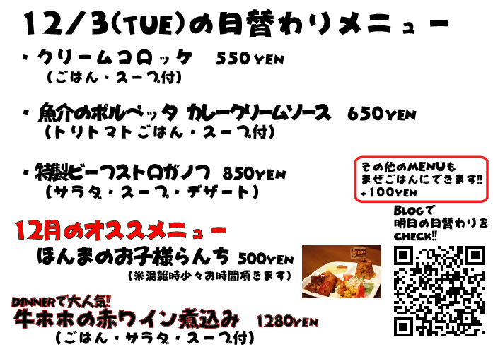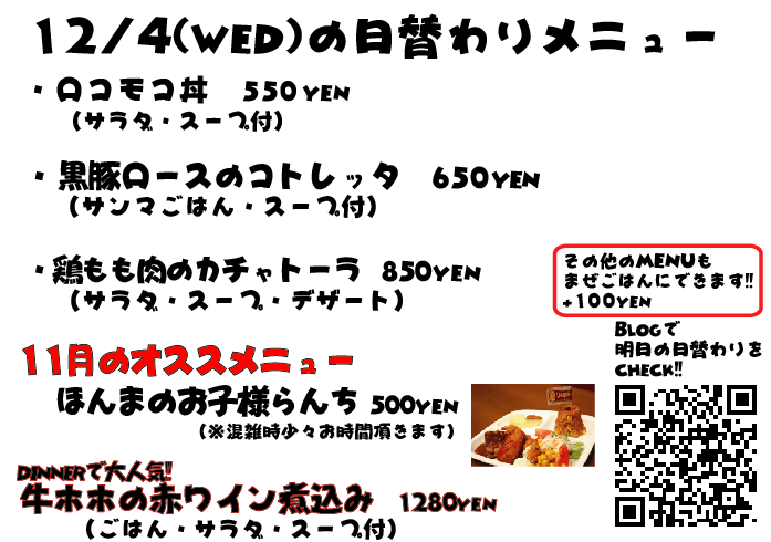 JUGEMテーマ:神戸・西宮・芦屋などの阪神間 こんばんは 投稿おそくなってしまいますた、すいません! 取り急ぎ明日の日替わりメニューで〜す
