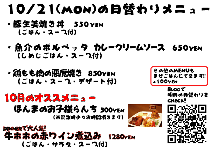 JUGEMテーマ:神戸・西宮・芦屋などの阪神間 こんばんは 遅くなりました!! 取り急ぎ、明日の日替わりランチですっ