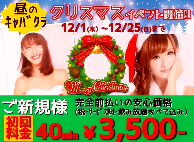 JUGEMテーマ:京都 キャバクラ情報 *<(*^-‘)ノ★Merry Christmas★ヽ(^-゜*)>* ☆;:*:;☆;:*:;☆☆;:*:;☆;:*:;☆☆;:*:;☆;:*:;☆ こんにちは!! ムーンライトスタッフです。 いよいよクリスマスシーズン到来ですね! ムーンライトでは昼の部限定でクリスマスキャンペーンとして 超お得な価格をご用意致しました。 *☆:;;:・:;;:*。゜:.・:゜。*:;;:・:;;:☆* この機会に是非、ムーンライトで楽しい時間をお過ごし下さい。 ご来店お待ちしておりま...