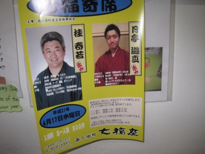 JUGEMテーマ:姫路市 来週17日水曜日は西二階町商店街七福寄席の日です。 出演予定は桂春若、月亭遊真のお二方。 七福座では他にも 20日㈯振袖講談 13時〜/17時〜落語2席、振袖講談 大人1500円〜 21日㈰は黒寄席 14時〜 経験宝fな素人さんたちによる落語会 六花亭春水ほか 無料 志、お待ちしています。 27日㈯笑いのとんぷく 13時〜 経験豊富な素人さんたちによる落語会 素留亭ドッグほか 無料 志、お待ちしています。 西二階町は、お祝...