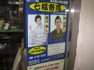 JUGEMテーマ:姫路市 今日は、西二階町の七福座での七福寄席です。 露の 都、 桂 小留 お二方による午前、午後の2回2席、2回の演目が違うものに成ります。 七福寄席の半券で、西二階町商店街でのお買い物がお得に成ります。 ぜひ、お買い物は西二階町商店街へ 今なら、5000円お買い上げで1回ガラポンが出来る大抽選会中。