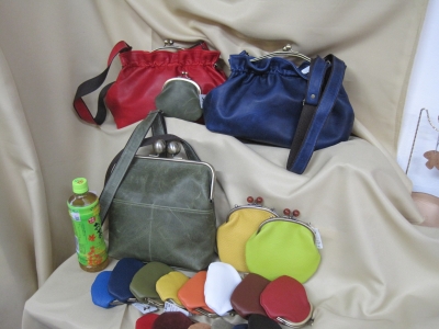 JUGEMテーマ:姫路市 姫路鞣しの革をお城の南徒歩5分の西二階町商店街で縫製しがま口等にし、その店舗のみで販売。姫路産の姫路でしか販売していない物をお土産として買って帰ってもらおうと思い営業中。 折角の旅行、そこにしかない物があれば見るだけでもお得感、姫兎は子供さんも楽しい簡単な体験も出来ます。 上段口金部分のギャザーが可愛いベンリー口金のショルダーバッグ鞄と小がま口、下段大玉口金のスクエアショルダーバッグとポーチ。ポーチは斜め掛け出来る」チェーン付きです。下に並んでいるのは色見本。...