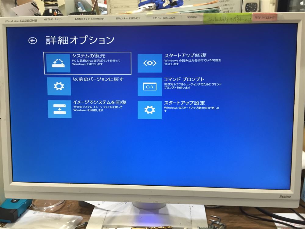 こんにちは。マックス姫路パソコンサポートセンター・マックスプランニング合資会社の松本匡人です。 パソコンの修理、パソコンの出張サポート、パソコンのトラブル解決専門会社です。 朝早く、お客様がLINEで画像を送ってきました。 「スタートアップ修復で直るかもしれませんよ」と伝えましたが 忙しくてやってる暇がなく大阪へ出張に行ってしまいましたので、さっそく訪問しました。 スタートアップ修復では直りませんでし...