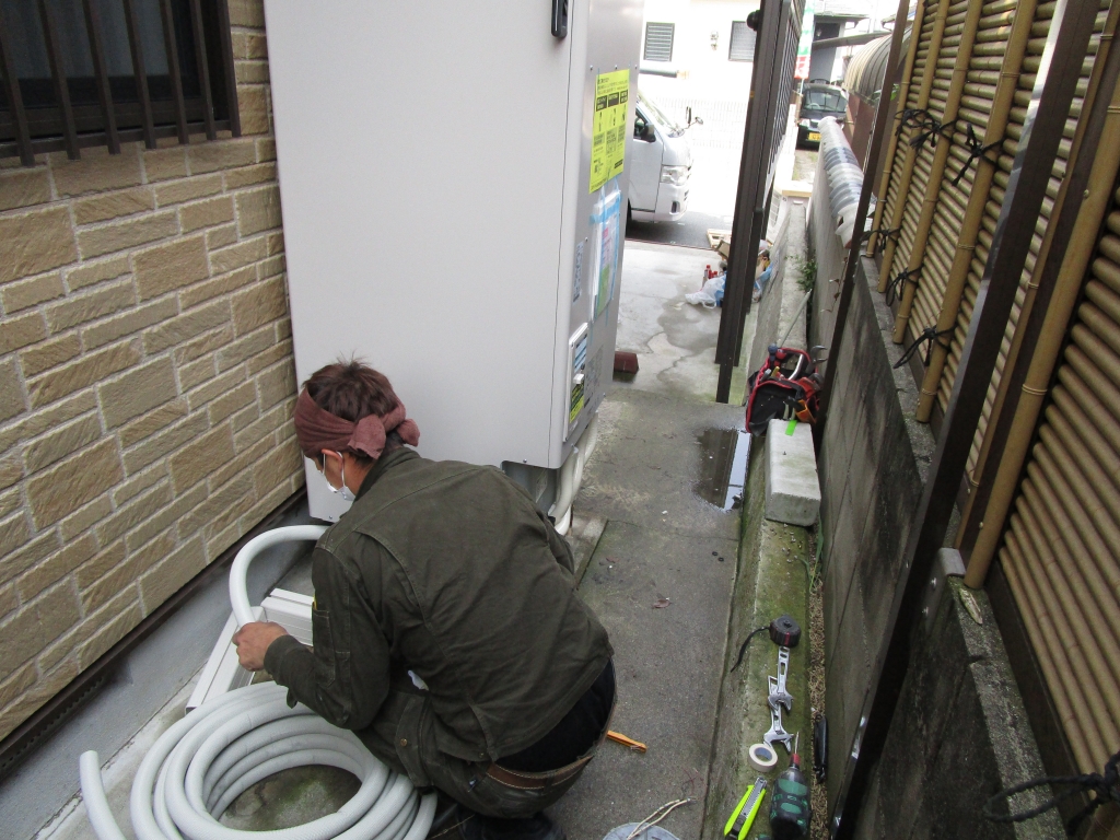 JUGEMテーマ:姫路市 オール電化、エコキュート、給湯器、IHクッキングヒーターの交換故障修理専門の兵庫県姫路市、旭株式会社の川上です。 本日もエコキュート修理のご依頼頂きました。 ご訪問するとエコキュートからお湯がじゃじゃ漏れでした。 原因はタンクとヒートポンプがつながる配管での漏水でした。 アルミ三層菅と呼ばれる配管を新調すると漏水が止まりました! 夕方になってしまいましたが即日対応出来たので本日もお湯の心配なくお風呂に入って頂けそうです...