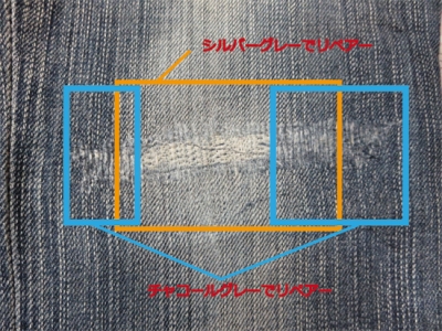 JUGEMテーマ:姫路市 ひざ部分のリペアーですが、ひざが左右に大きく裂けていました。その真ん中だけ白く色落ちしていますので糸の色を変えることで、より自然な感じに仕上げました。 最近は、股のリペアーが多いですね。暖かくなって自転車に乗る機会が増えているのでしょうか?