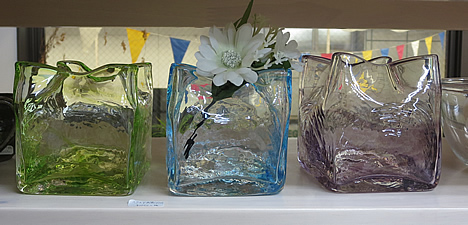 京都出町桝形商店街にこっそり存在する 旅の情報ステーション京都「風の駅」です。 スクエアガラスの花器入荷しました。 まるでガラス製の袋みたいに、四隅がつまんだ型にになっていて 美しいです。 この隅に小さな花を生けるとぴったりと落ち着きます。 花が綺麗に見える花器です。 カラーは3色、 アクアグリーン、アクアブルー、クリアパープル。 同色のお花を生けると美しさが引き立ちます。 よろしければ応援お願いしますm(_ _)m 駅長、喜びます。 風の駅(出町桝形商店街内) 京都市上京区桝形通...