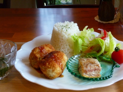 JUGEMテーマ:カフェ@京阪神 はなちゃん特製コロッケ サラダ おさかなのムニエル スープ ごはんorパン