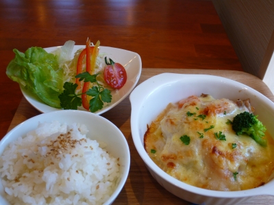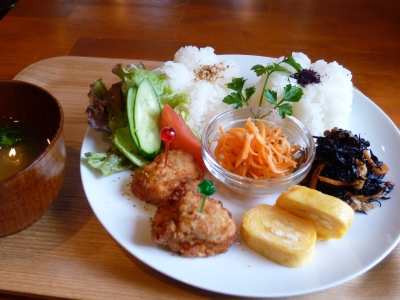 JUGEMテーマ:カフェ@京阪神 はなちゃんの気まぐれランチメニューは、はるのつくね弁当照り焼きつくね、お魚のムニエル、サラダ、おひたし、おみそ汁ごはんorパン
