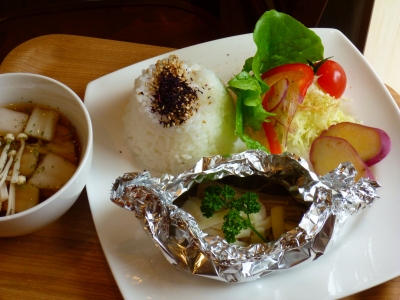 JUGEMテーマ:カフェ@京阪神 はなちゃんの気まぐれランチは、あつあつホイル焼きサラダごはんorパン具だくさん豚汁で〜す。