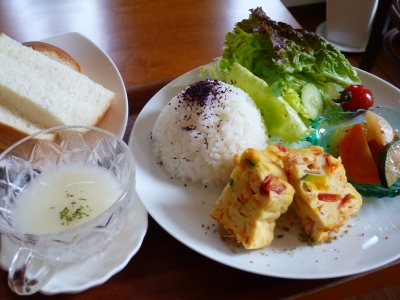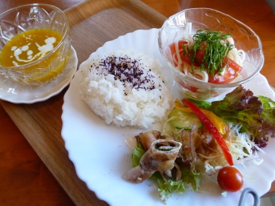 JUGEMテーマ:カフェ@京阪神 台風のあと爽やかな青空がもどってきました。かぼちゃの冷製スープ梅チーズ巻き焼き夏野菜の冷製パスタサラダぱんorごはんお盆も休まず営業いたしております。