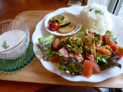 JUGEMテーマ:カフェ@京阪神 毎日あつい日が、続きますが、はなちゃんらんちは、鶏のから揚げ香味ねぎソースズッキーニとジャガイモのマリネサラダ、冷たいスープ手芸の会は、26日(土)14時からです!